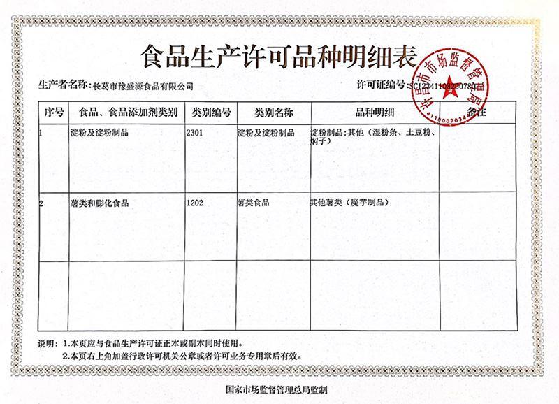 食品生產(chǎn)許可證品種明細(xì)表